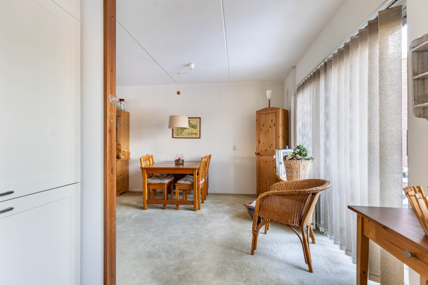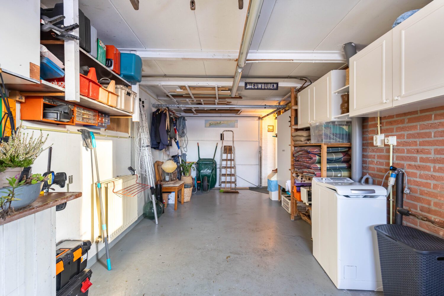 Bij binnenkomst word je verwelkomd in een praktische hal, vanwaar u direct toegang heeft tot de aangebouwde garage. Deze geisoleerde ruimte is van alle gemakken voorzien zoals: water, elektra, verwarming en wasmachine aansluiting, waardoor het een bijzonder bruikbare plek is voor wie extra ruimte wenst voor hobby, werk of opslag. Vanuit de hal loop je door naar de ruime en lichte woonkamer, waar het daglicht vrij spel heeft en de open keuken op natuurlijke wijze onderdeel vormt van het geheel. Hier ontstaat een gezellige en uitnodigende leefruimte waar samen koken, eten en ontspannen moeiteloos in elkaar overvloeien.