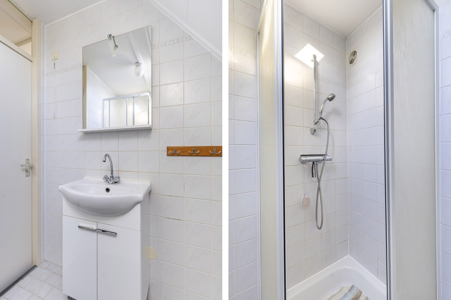 1e verdieping: overloop, 3 slaapkamers, badkamer met douchecabine en wastafelmeubel.