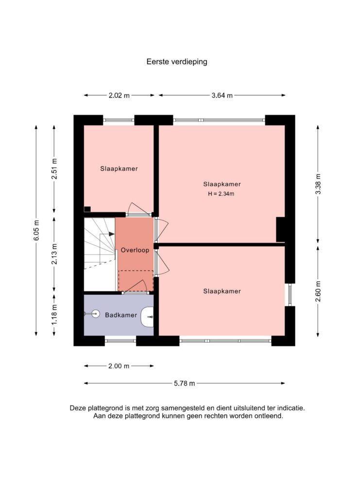 Op de eerste verdieping bevinden zich drie slaapkamers en een badkamer. Daarmee is dit een fijne gezinswoning met een goede basisindeling.
