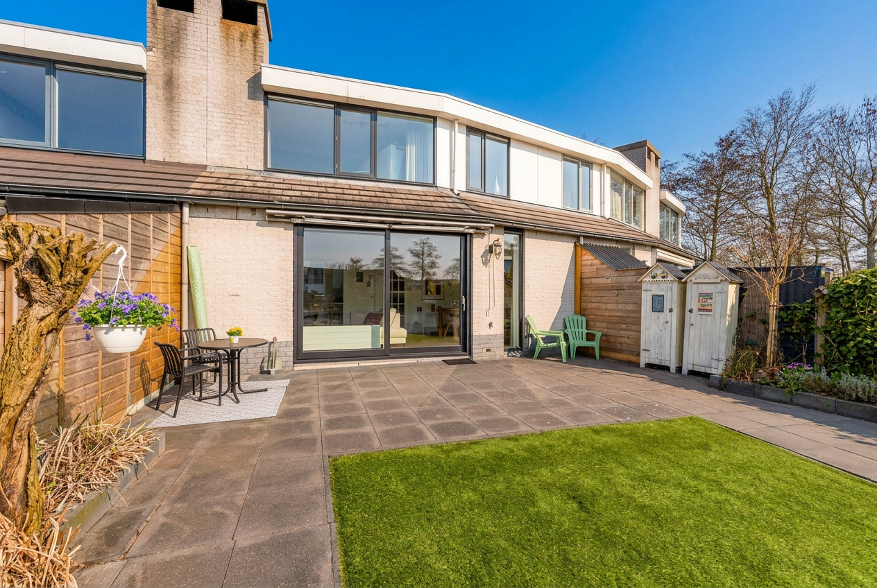 Een fijne, goed onderhouden woning op een unieke plek waar binnen en buiten moeiteloos in elkaar overlopen.
