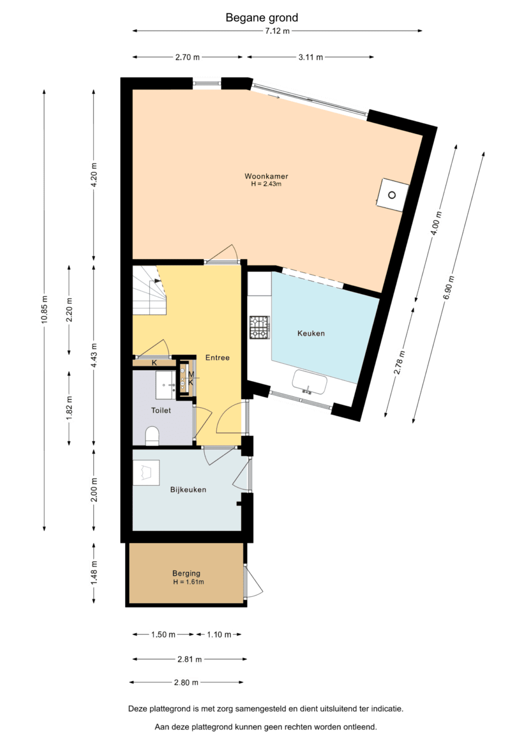 entree/hal, bijkeuken met witgoedaansluiting, ruim toilet met wastafelmeubel (met warmwateraansluiting, hierdoor gemakkelijk om te bouwen tot 2e douche), trapopgang, sfeervolle woonkamer met schuifpui naar de achtertuin en uitzicht op het water, hoekkeuken met inbouw apparatuur zoals: vaatwasser, oven, 4-pits gasfornuis en koelkast.