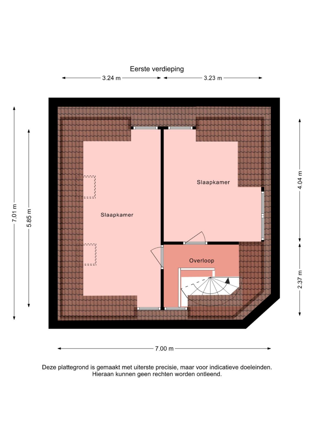 Verdieping: overloop en 2 slaapkamers.
