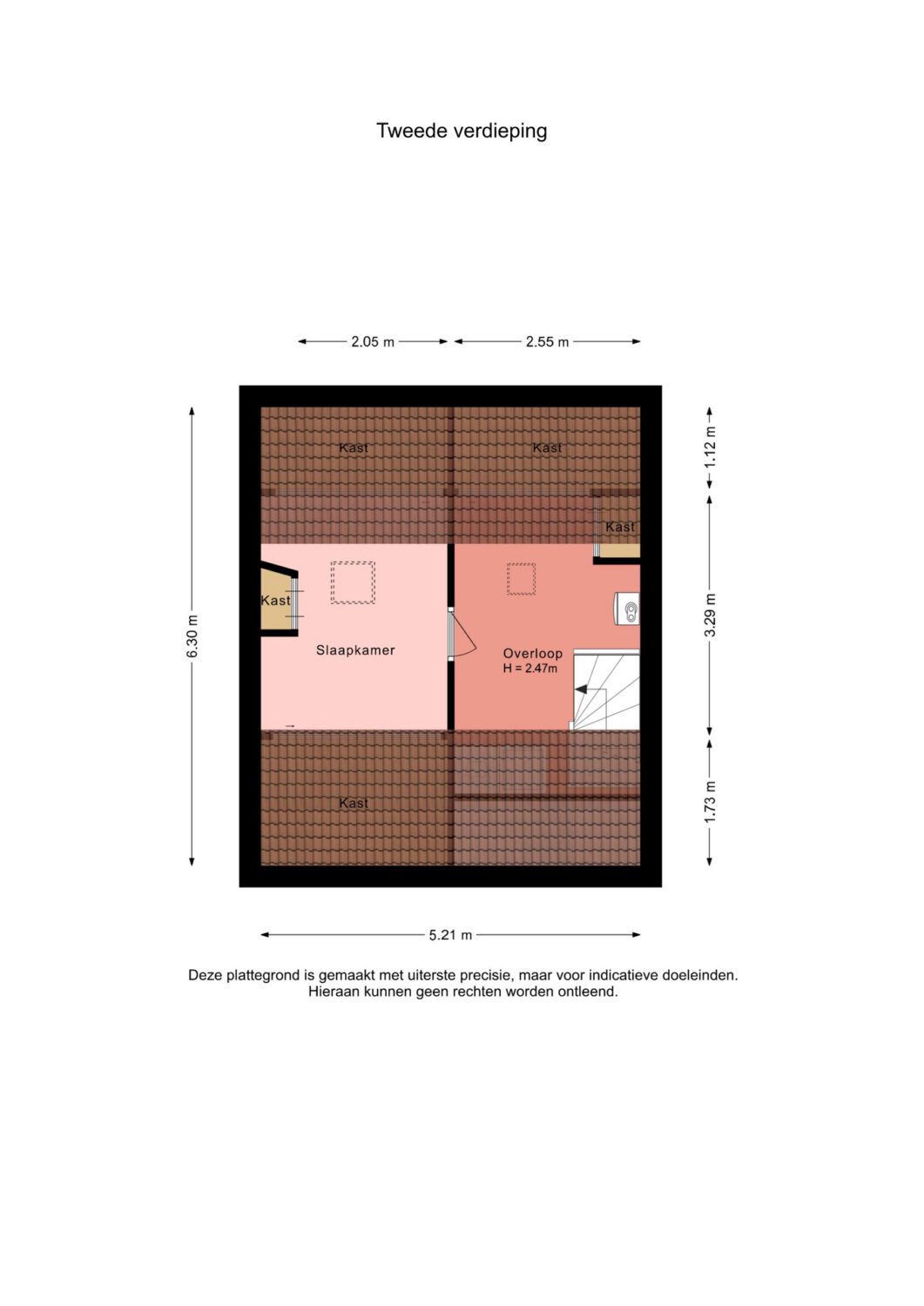 2e verdieping: overloop met cv-opstelling en witgoedaansluiting, slaapkamer.