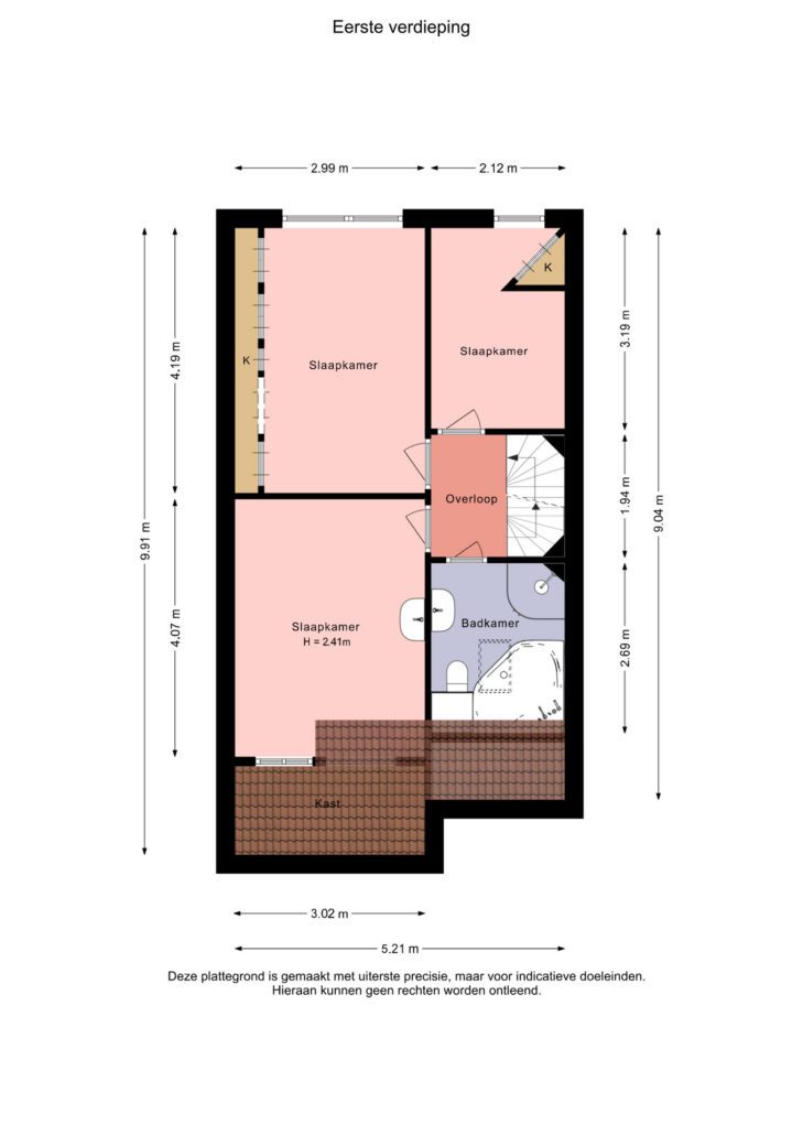 Op de eerste verdieping vind je drie ruime slaapkamers, ideaal voor een groeiend gezin, werkruimte of hobby. Via de vaste trap bereik je de zolderverdieping met een royale overloop voorzien van witgoedaansluitingen én een vierde slaapkamer. Perfect voor wie extra leef- of bergruimte zoekt.